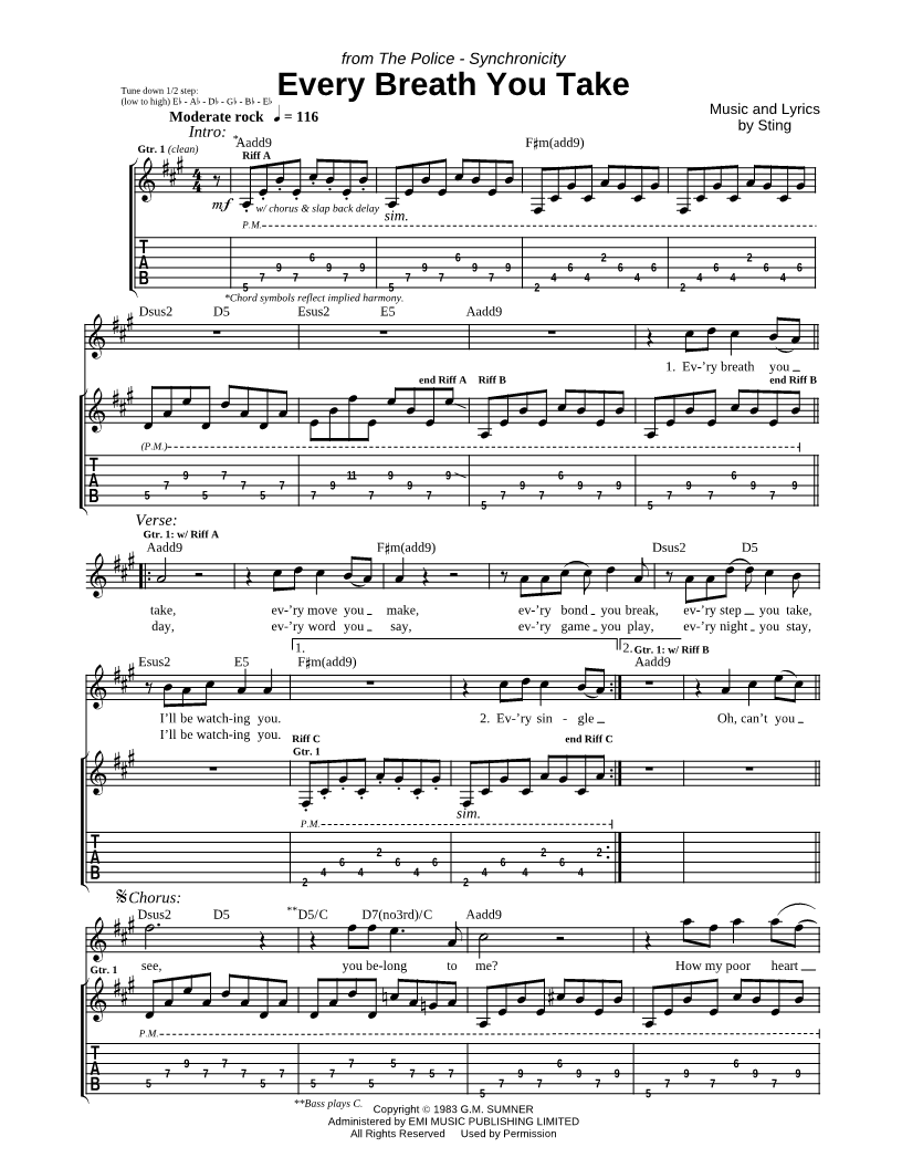 Ev'ry breath you take, ev'ry move you make, ev'ry bond you break, ev'ry step you take, |