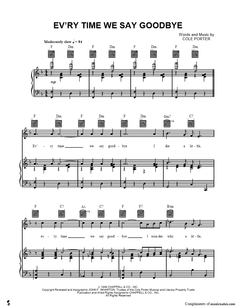 Ev'ry time we say goodbye I die a little, ev'ry time we say goodbye I wonder why a little. |