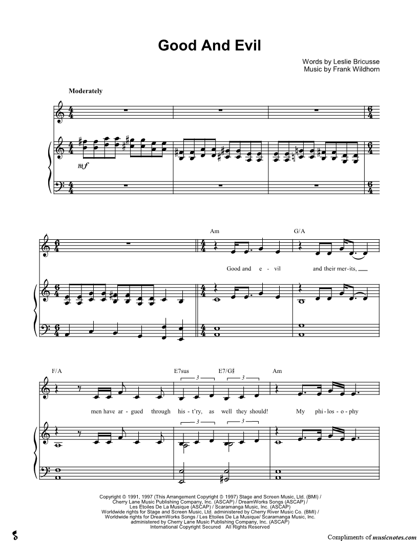 Good and evil and their merits, men have argued through hist'ry, as well they should! |