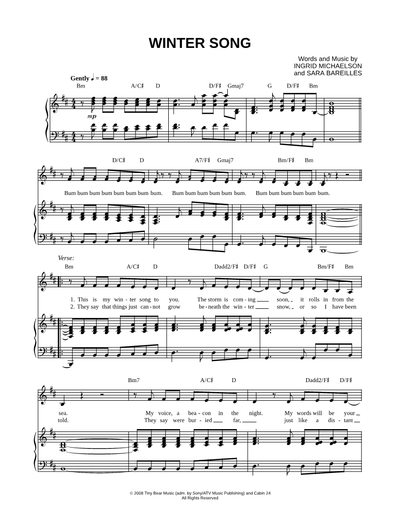 Bum bum bum bum bum bum bum bum. This is my winter song to you. |