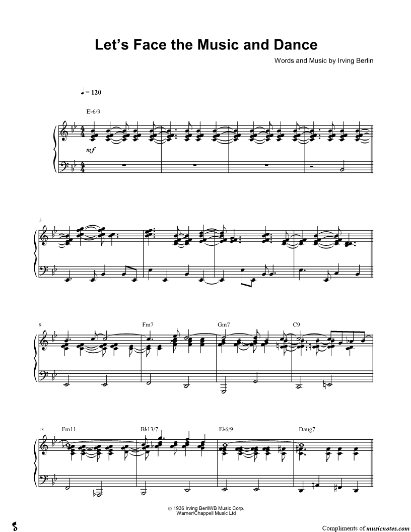 There may be trouble ahead, but while there's music and moonlight and love and romance, let's face the music and dance. |
