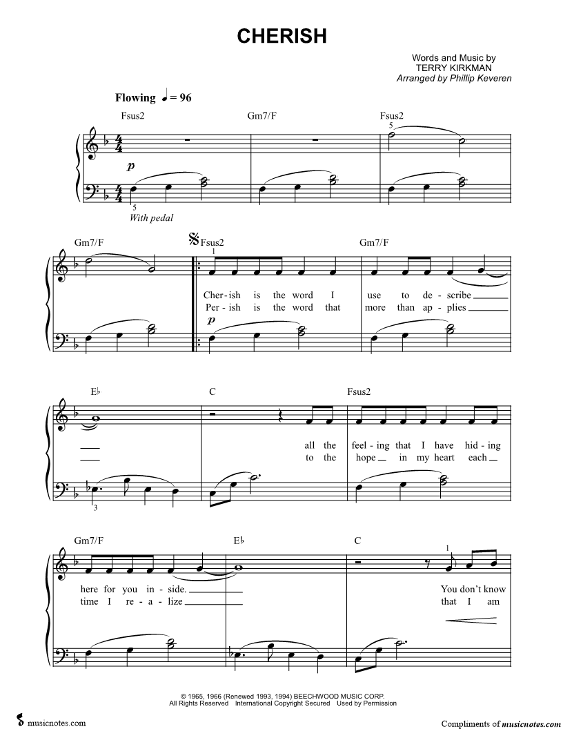 Cherish is the word I use to describe all the feeling that I have hiding here for you inside. |