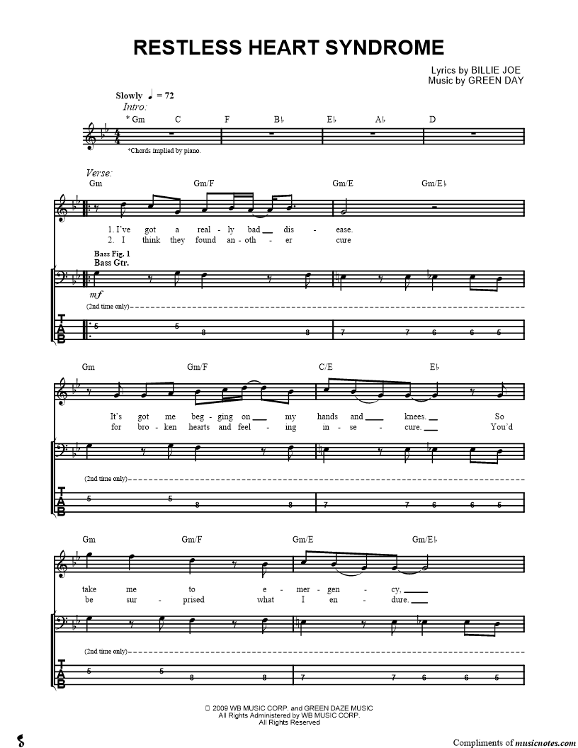 Bass Tab Bass/Vocal |
