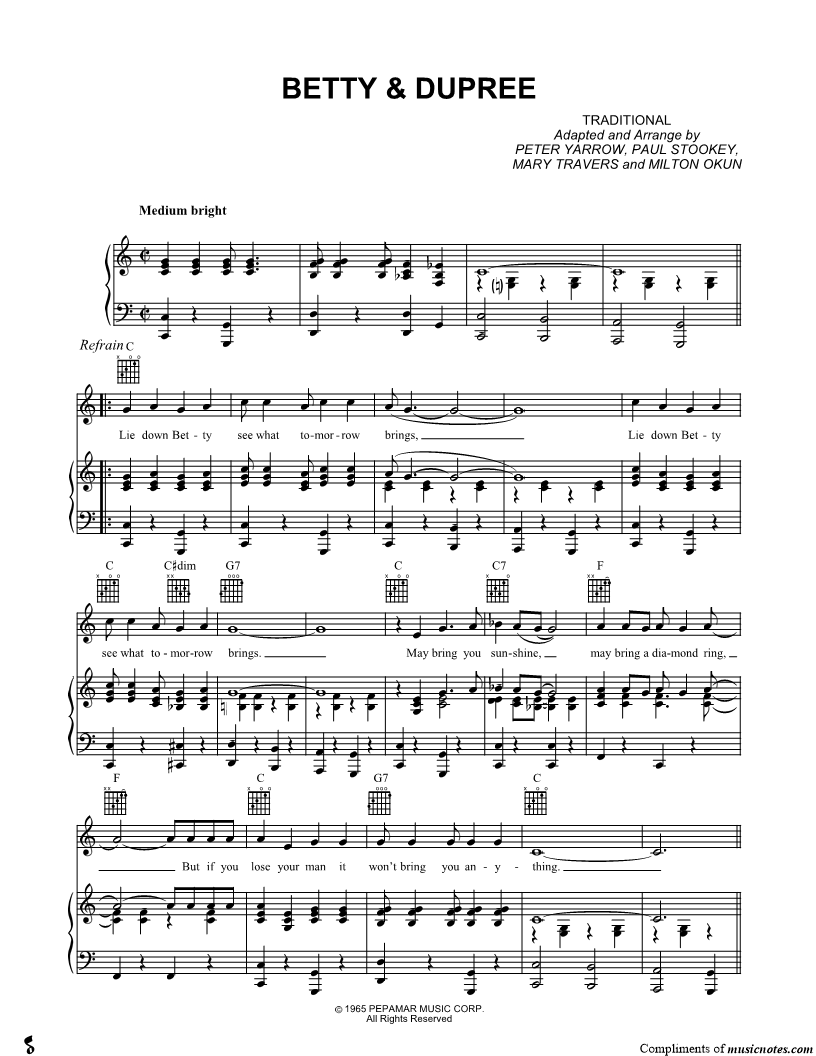 Musicnotes sells a wide variety of digital sheet music products including Singer Pros, Beginner Notes, Choral music, Piano Solos, Lead Sheets, Piano/Vocal/Guitar, Solo and Accompaniment, and fretted instrument tablature.