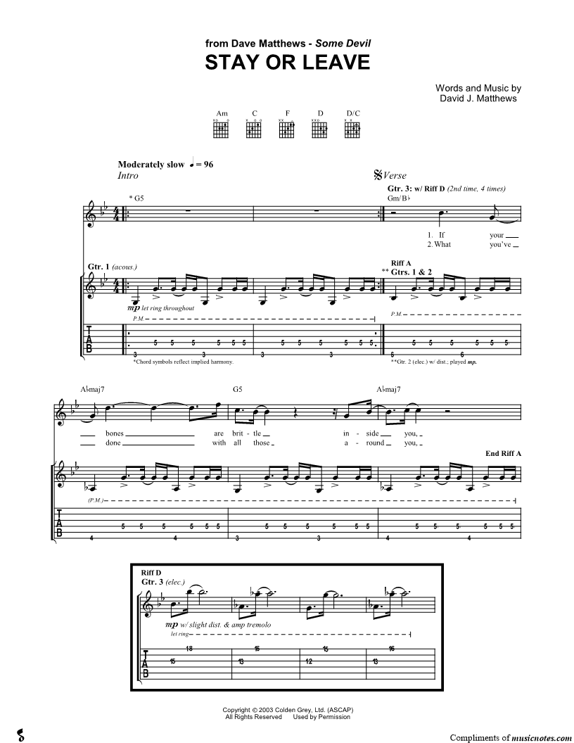 Guitar Tab Guitar/Vocal |