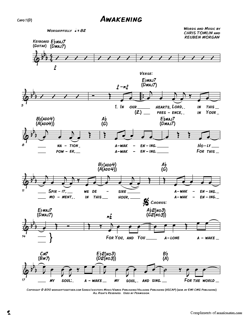 Voice, range: Eb4-G5 Keyboard or Guitar C Instrument | |