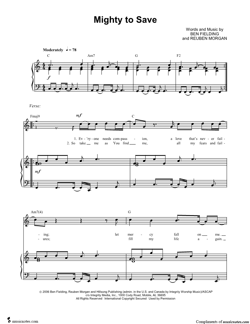 Ev'ryone needs compassion, a love that's never failing; let mercy fall on me. |