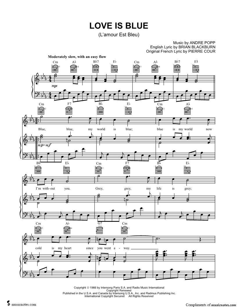 Blue, blue, my world is blue; blue is my world now I'm without you. |