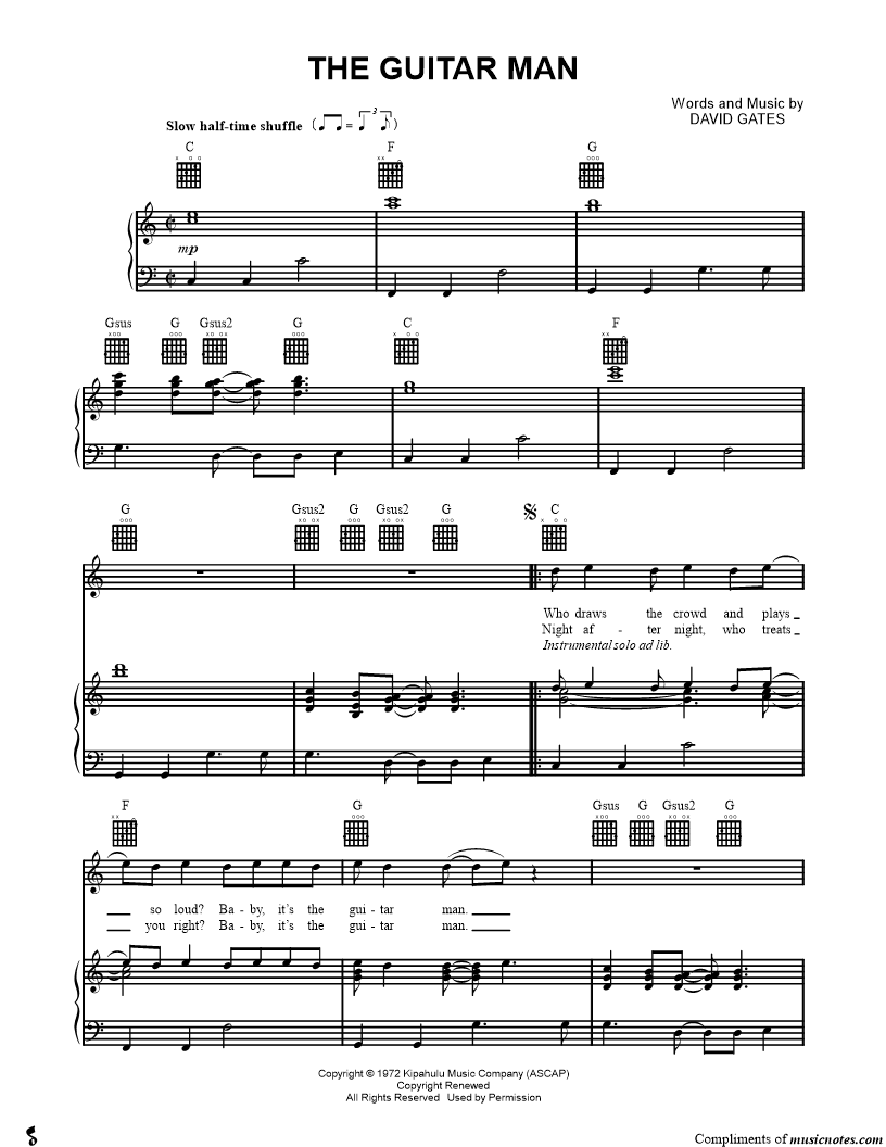 Musicnotes sells a wide variety of digital sheet music products including Singer Pros, Beginner Notes, Choral music, Piano Solos, Lead Sheets, Piano/Vocal/Guitar, Solo and Accompaniment, and fretted instrument tablature.