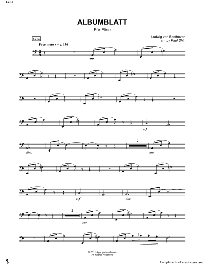 Für Elise - Cello (String Quartet) |