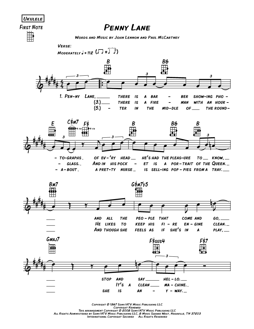 Penny Lane, there is a barber showing photographs of ev 'ry head he's had the pleasure to know, and all the people that come and go, stop and say hello. |