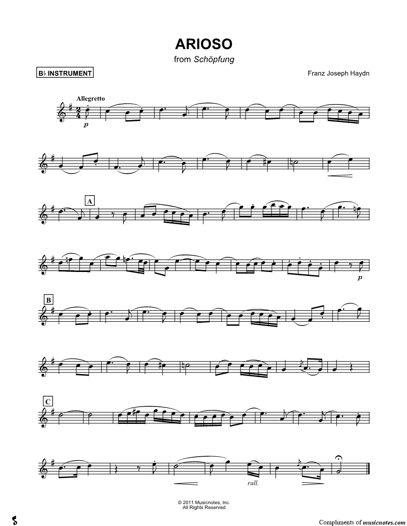 Arioso, from Schöpfung - Bb Instrument |