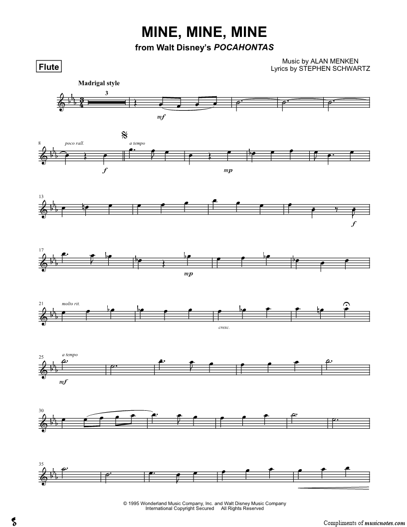 Mine, Mine, Mine - Flute & Piano from Walt Disney's Pocahontas