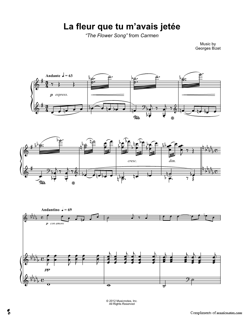 The Flower Song - F Instrument & Piano La fleur que tu m'avais jetée