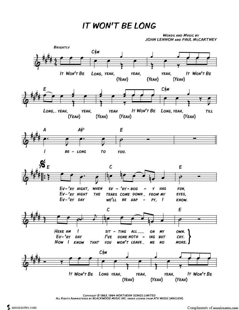 It Won't Be Long, yeah, yeah, yeah, |