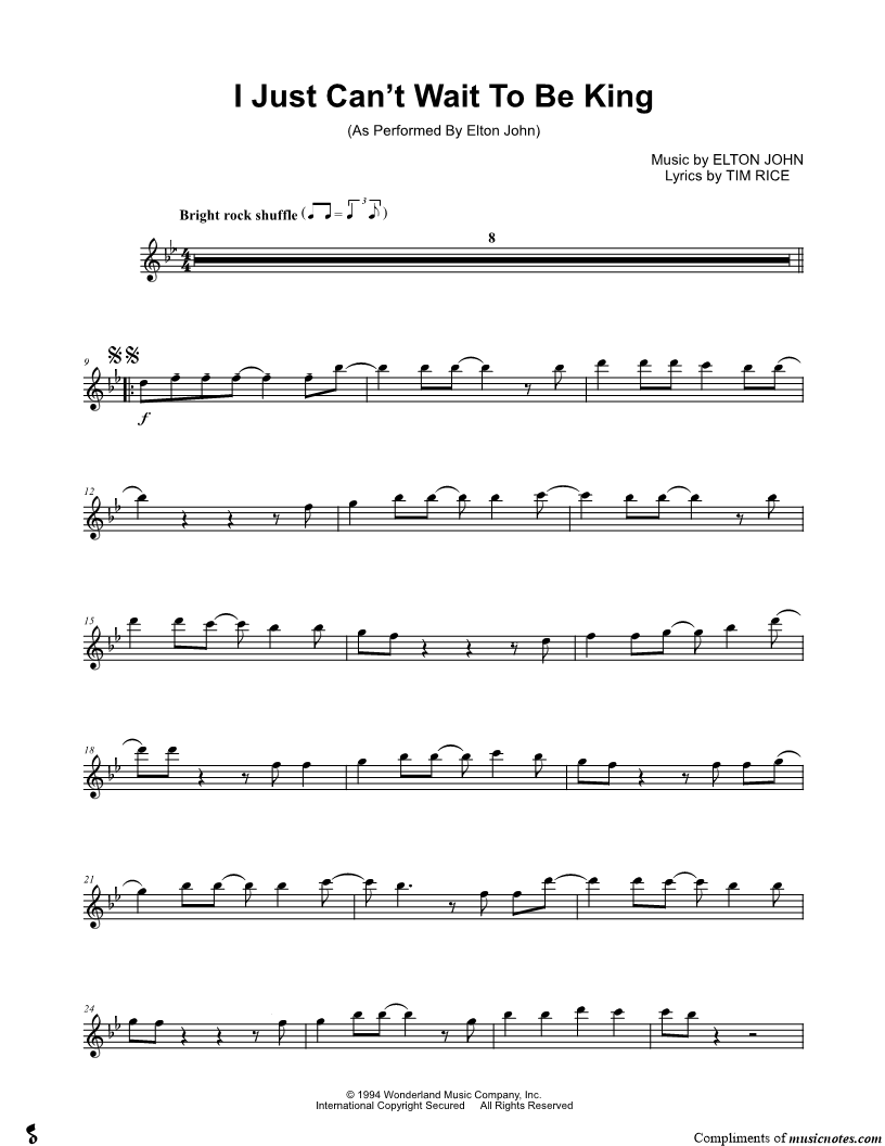 I Just Can't Wait To Be King - C Instrument & Piano Accompaniment
