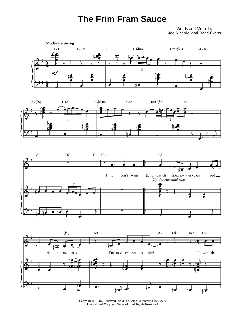 I don't want french fried potatoes, red ripe tomatoes, |