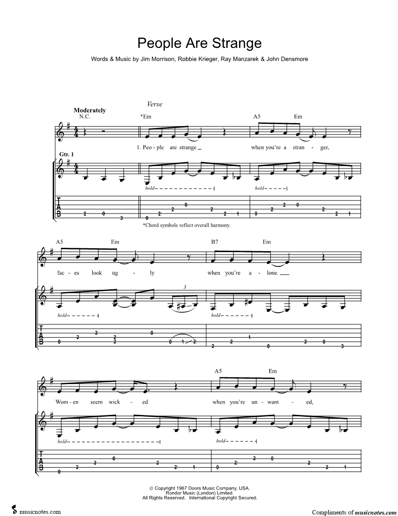 People are strange when you're a stranger, faces look ugly when you're alone. |