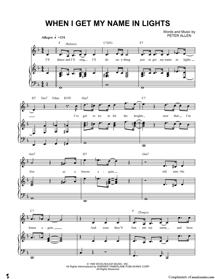 I'll dance and I'll sing, I'll do anything just to get my name in lights. |