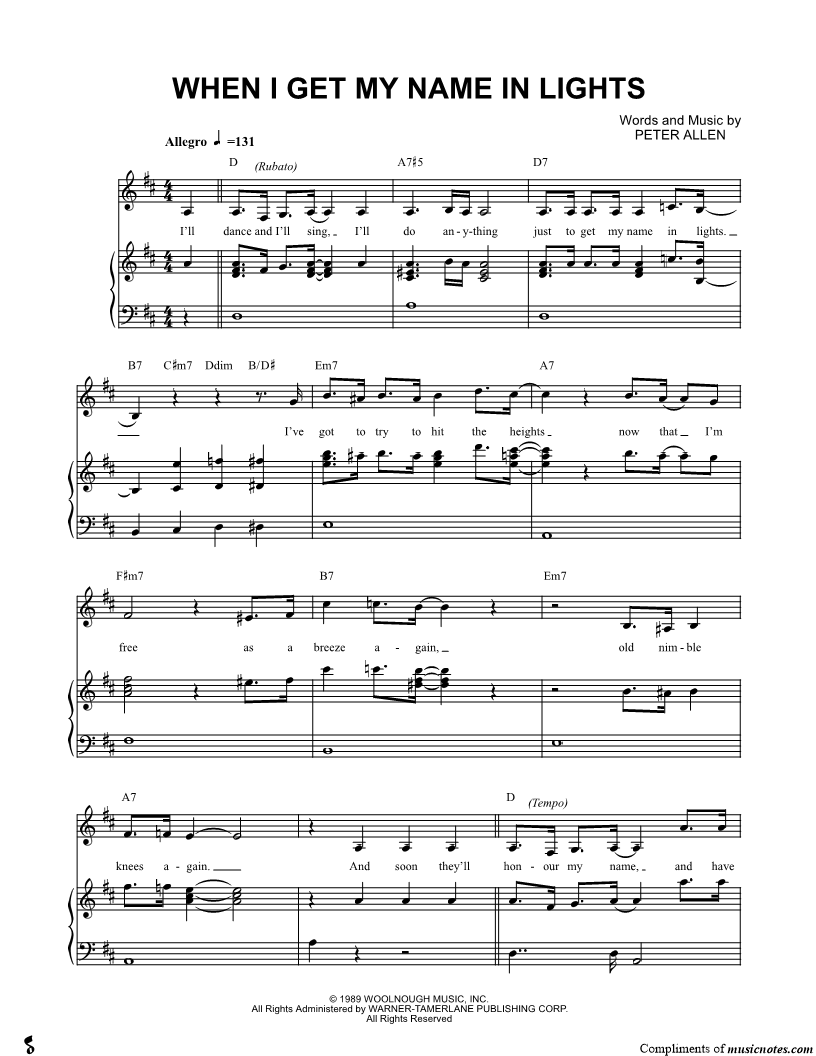 I'll dance and I'll sing, I'll do anything just to get my name in lights. |