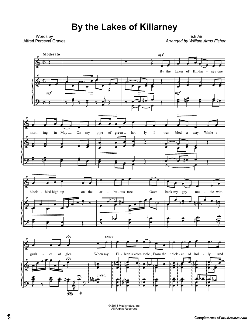 By the Lakes of Killarney one morning in May On my pipe of green holly I warbled away, |