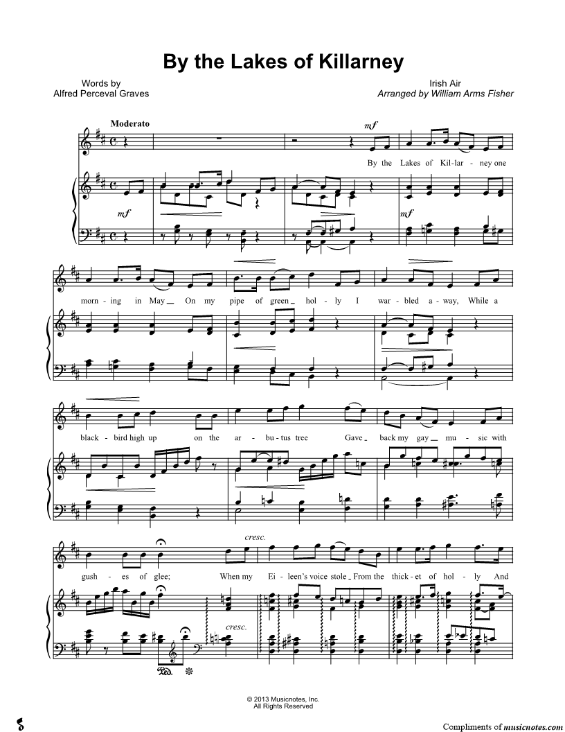 By the Lakes of Killarney one morning in May On my pipe of green holly I warbled away, |