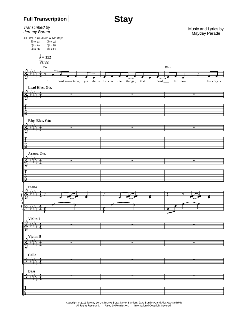 Electric Guitar 1 Electric Guitar 2 Acoustic Guitar Piano Violin 1 Violin 2 Cello Bass | |