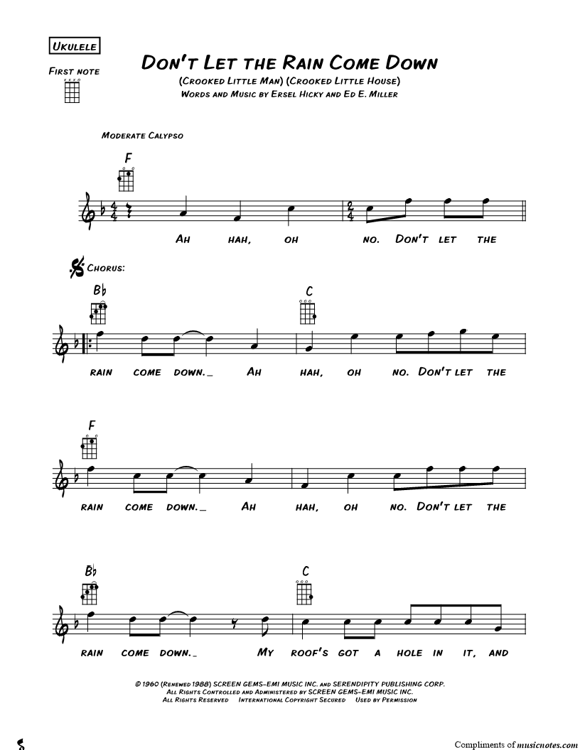 Ukulele/Vocal/Chords Leadsheet |