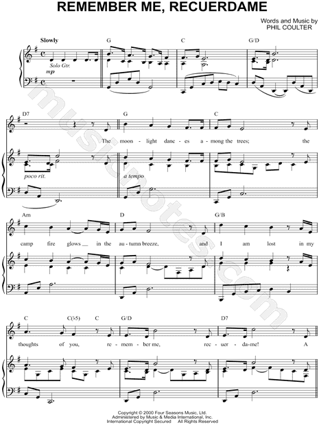 The moonlight dances among the trees; the camp fire glows in the autumn breeze, and I am lost in my thoughts of you, remember me, recuerdame! |