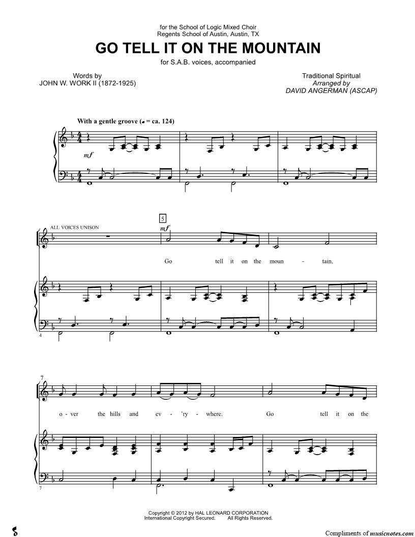 Go tell it on the mountain, over the hills and ev'rywhere. |