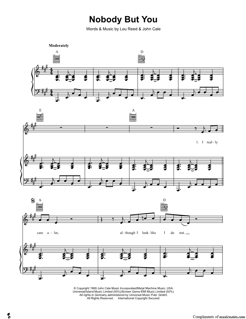 Musicnotes sells a wide variety of digital sheet music products including Singer Pros, Beginner Notes, Choral music, Piano Solos, Lead Sheets, Piano/Vocal/Guitar, Solo and Accompaniment, and fretted instrument tablature.