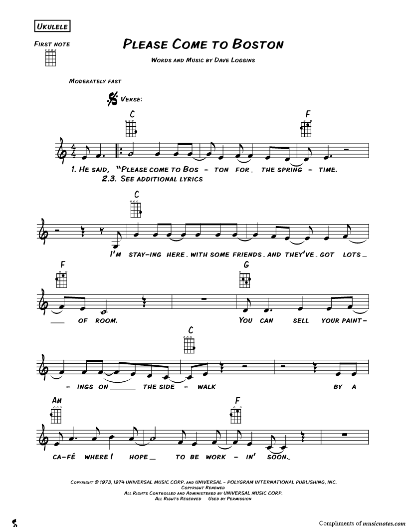 Ukulele/Vocal/Chords Leadsheet |