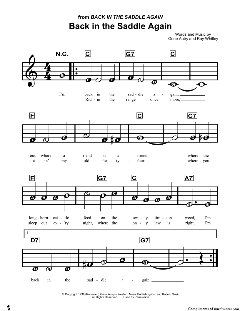I'm back in the saddle again, out where a friend is a friend; where the longhorn cattle feed on the lowly jimson weed, |