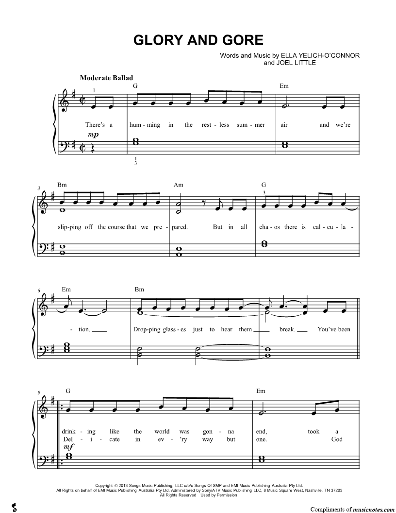 Musicnotes sells a wide variety of digital sheet music products including Singer Pros, Beginner Notes, Choral music, Piano Solos, Lead Sheets, Piano/Vocal/Guitar, Solo and Accompaniment, and fretted instrument tablature.