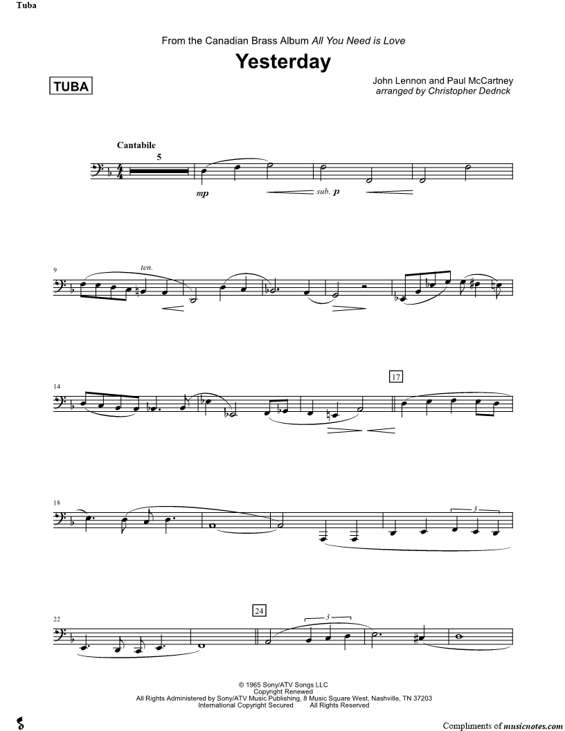 Yesterday - Tuba (Brass Quintet) |