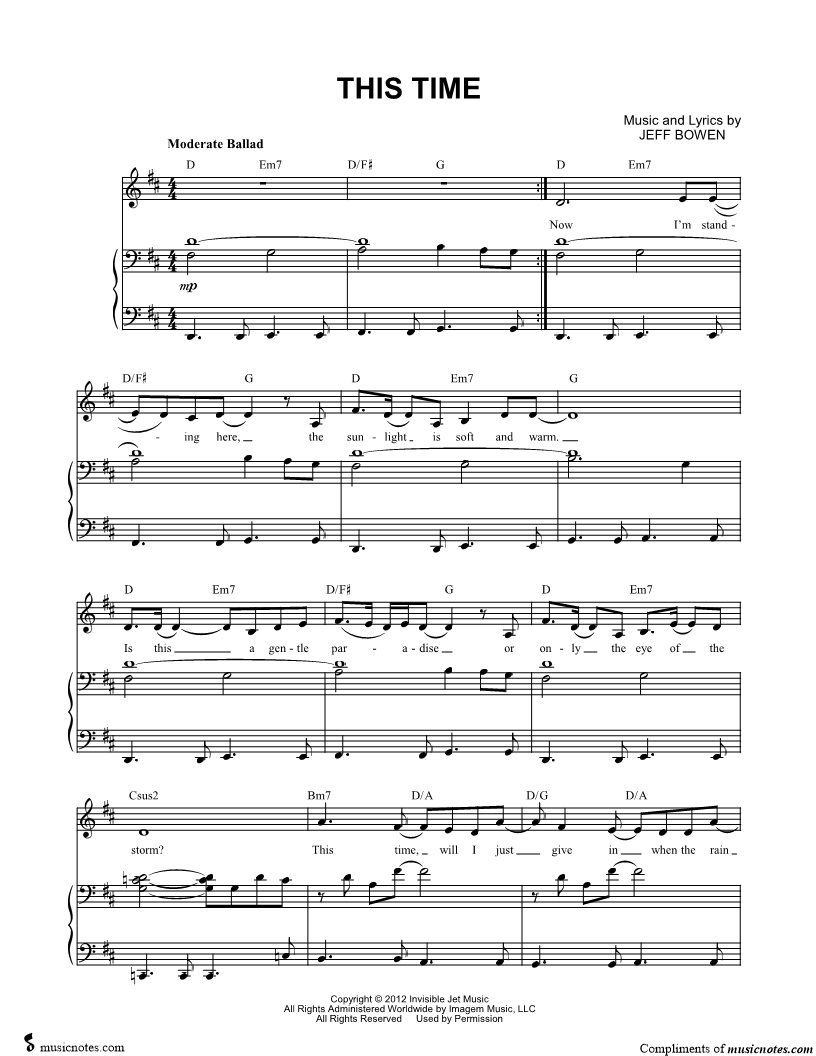 "A lovely arrangement of a lovely song! Easy to cut and great for auditions."