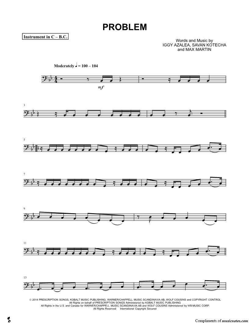 Bass Clef Instrument, range: F2-C4 (Cello, Double Bass, Trombone, Bassoon or Baritone Horn) | |