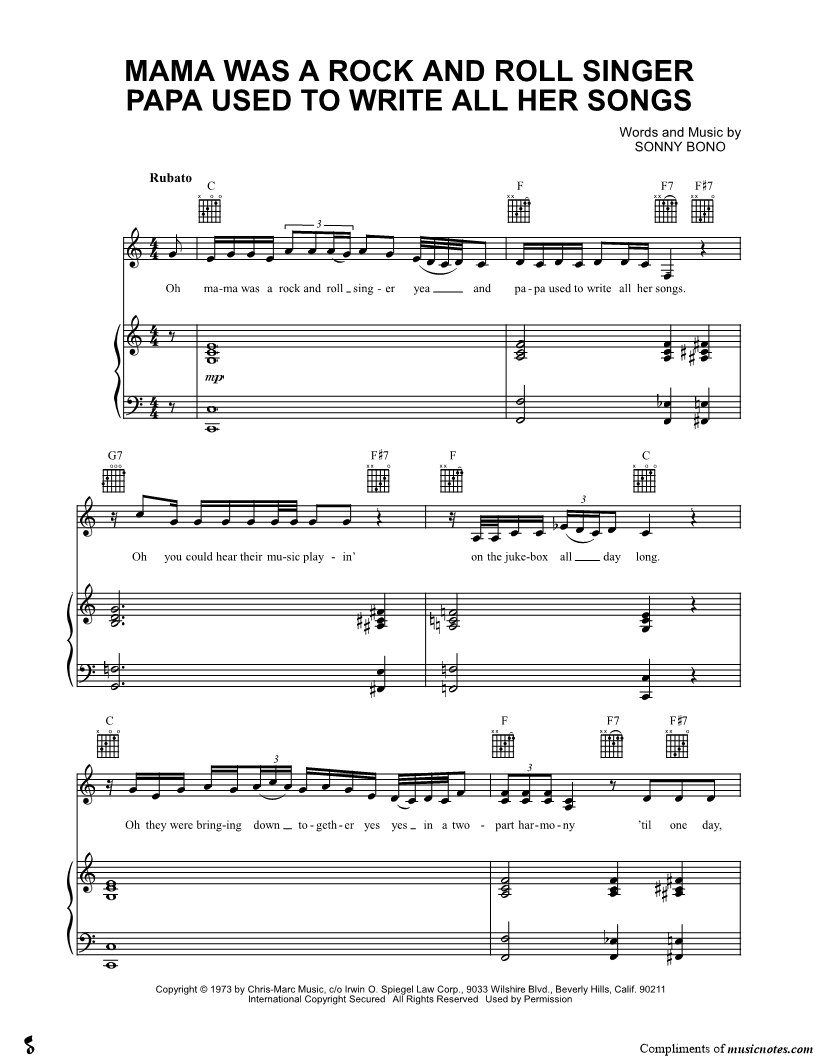 Oh mama was a rock and roll singer yea and papa used to write all her songs. |
