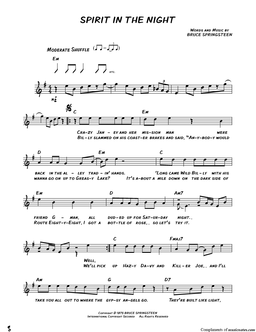 Leadsheets typically only contain the lyrics, chord symbols and melody line of a song and are rarely more than one page in length. Musicians will often use these skeletons to improvise their own arrangements. Leadsheets often do not contain complete lyrics to the song.