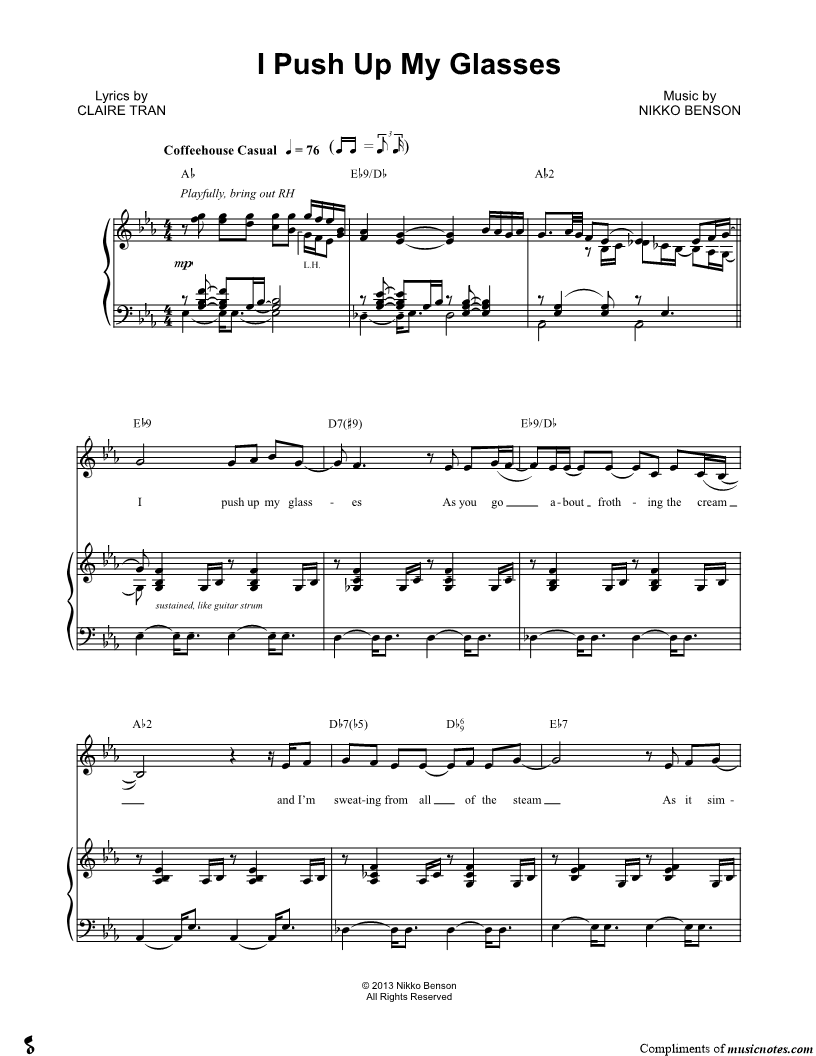 Musicnotes sells a wide variety of digital sheet music products including Singer Pros, Beginner Notes, Choral music, Piano Solos, Lead Sheets, Piano/Vocal/Guitar, Solo and Accompaniment, and fretted instrument tablature.