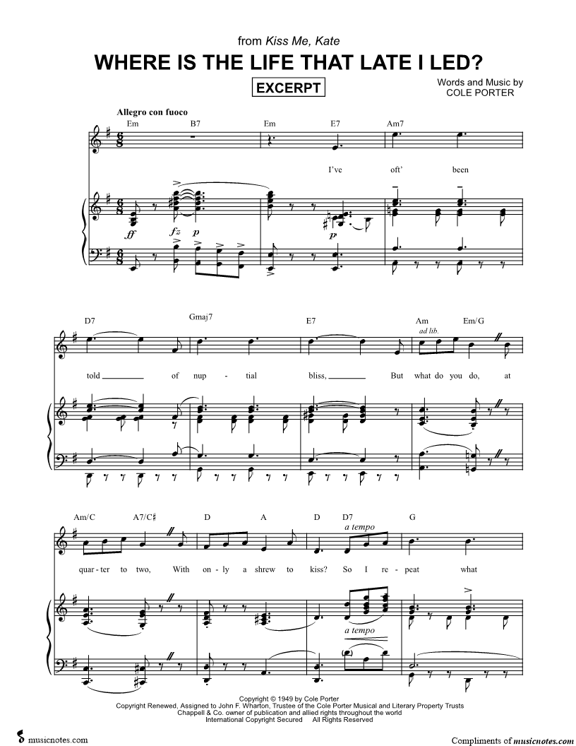 Musicnotes sells a wide variety of digital sheet music products including Singer Pros, Beginner Notes, Choral music, Piano Solos, Lead Sheets, Piano/Vocal/Guitar, Solo and Accompaniment, and fretted instrument tablature.