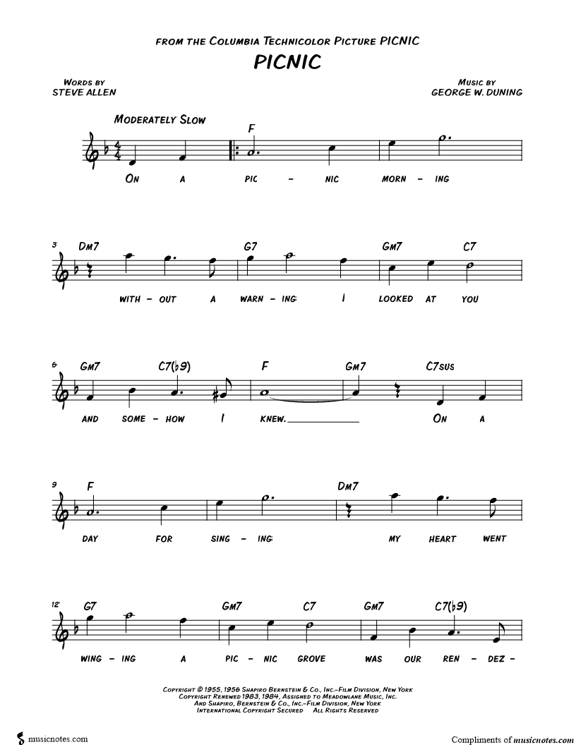 On a picnic morning without a warning I looked at you and somehow I knew. |