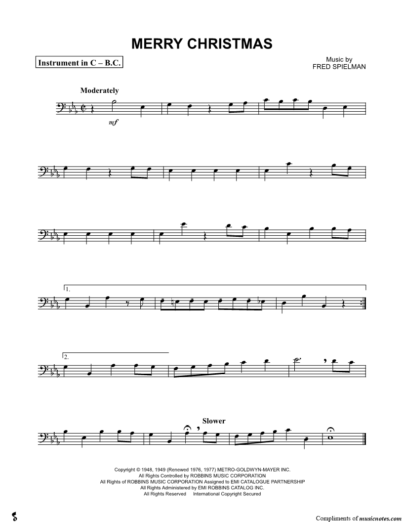Tuba Bass Clef Instrument (Trombone, Cello, Double Bass, Bassoon or Baritone Horn) | |