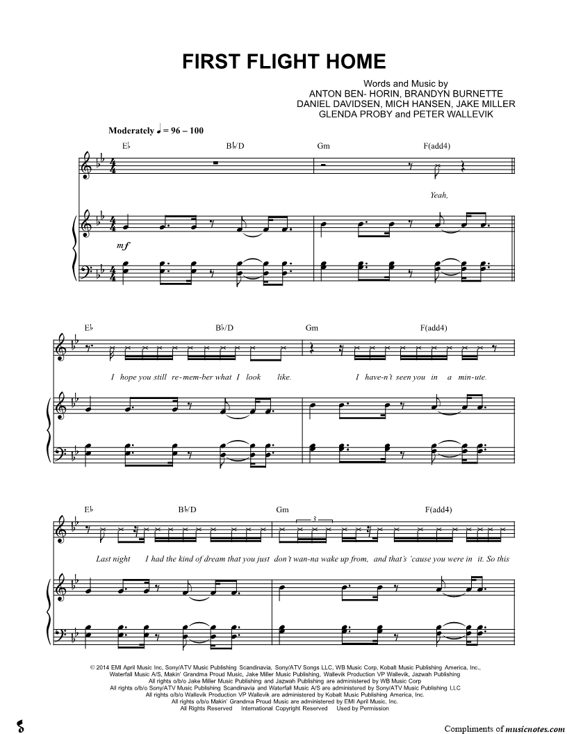 Voice, range: F4-G5 Piano Backup Vocals | |