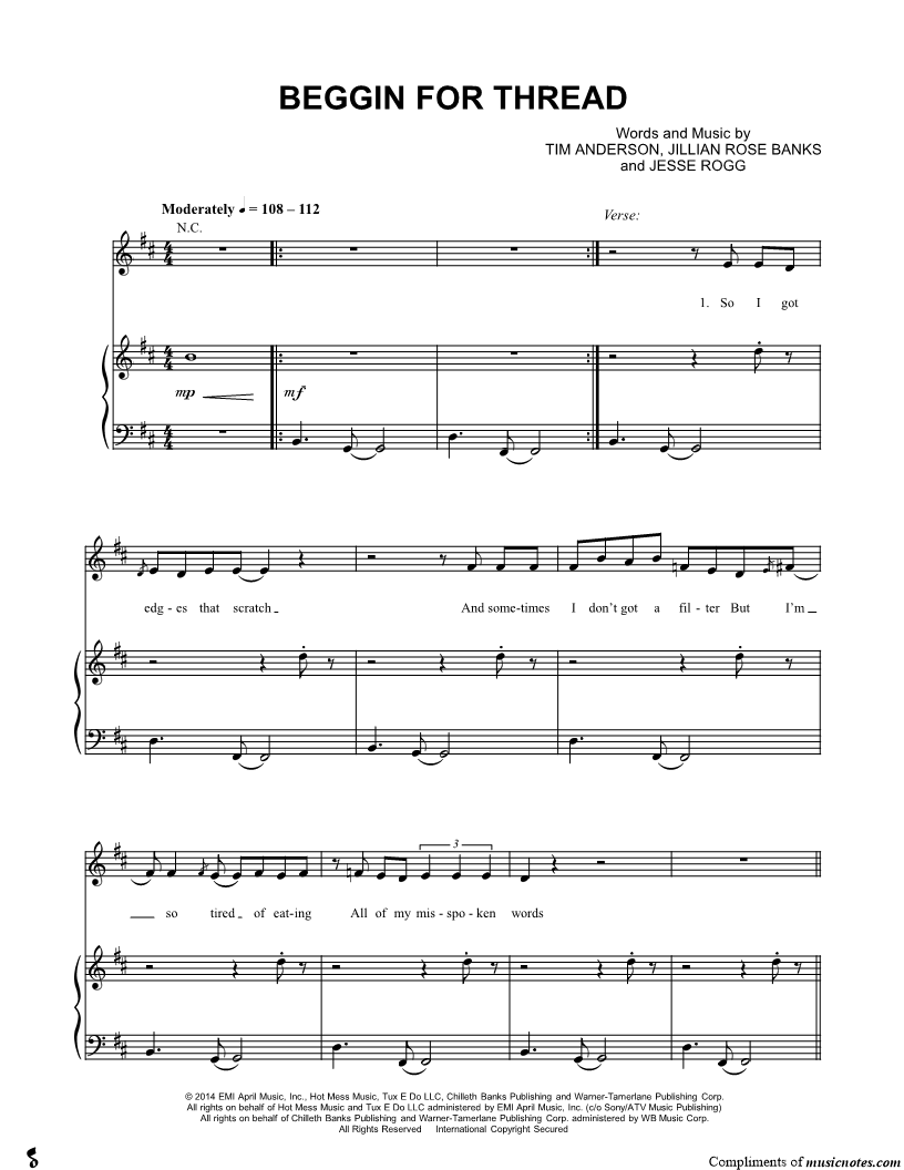 Musicnotes sells a wide variety of digital sheet music products including Singer Pros, Beginner Notes, Choral music, Piano Solos, Lead Sheets, Piano/Vocal/Guitar, Solo and Accompaniment, and fretted instrument tablature.
