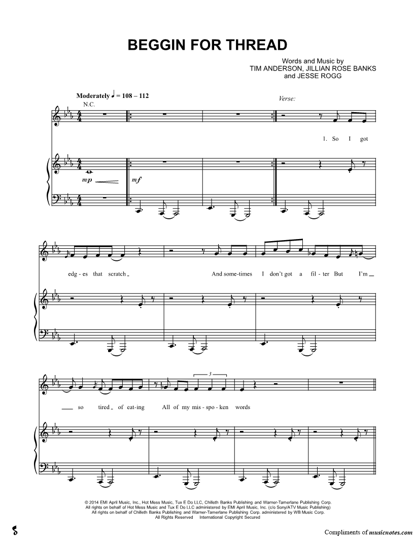 Musicnotes sells a wide variety of digital sheet music products including Singer Pros, Beginner Notes, Choral music, Piano Solos, Lead Sheets, Piano/Vocal/Guitar, Solo and Accompaniment, and fretted instrument tablature.