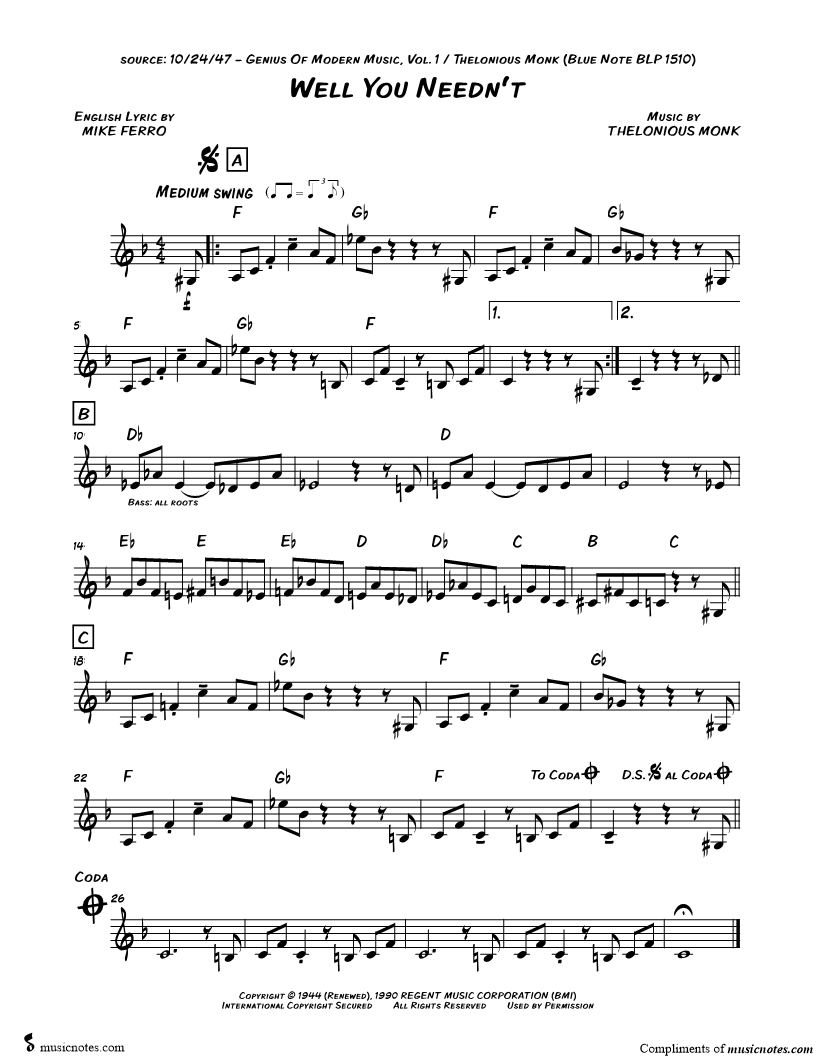 Leadsheets typically only contain the lyrics, chord symbols and melody line of a song and are rarely more than one page in length. Musicians will often use these skeletons to improvise their own arrangements. Leadsheets often do not contain complete lyrics to the song.