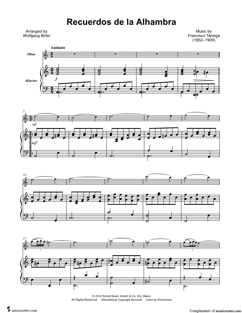 Recuerdos de la Alhambra - Oboe & Piano |