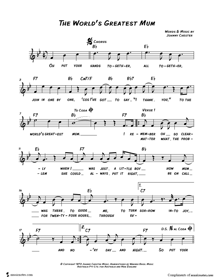 Oh put your hands together, all together, join in one by one, 'cos I've got to say "I thank you," to the world's greatest mum. |
