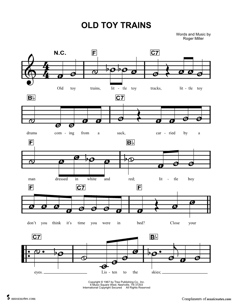 Old toy trains, little toy tracks, little toy drums coming from a sack, carried by a man dressed in white and red; little boy don't you think it's time you were in bed? |